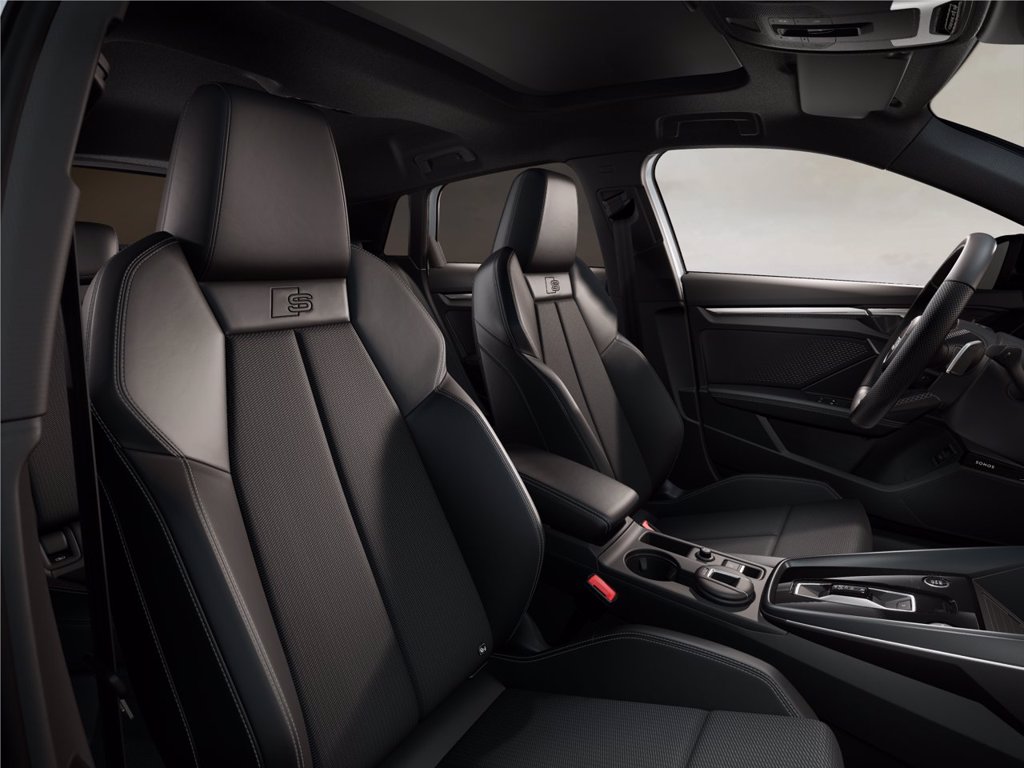 • Interni S con sedili sportivi, combinazione tessuto/similpelle in Nero